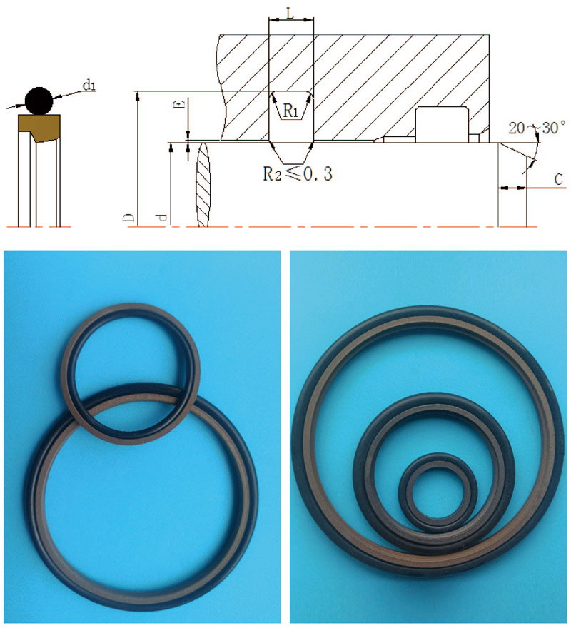 斯特封一般由一個橡膠〇型圈及聚四氟乙烯圈組合而成。〇型圈為施力元件,提供足夠的密封力,并對聚四氟乙烯圈起補償作用。適用于液壓缸活塞桿用密封。斯特封為單作用密封,分為活塞用斯特封和活塞桿用斯特封。斯特封具有摩擦力低,無爬行,啟動力小,耐高壓,溝槽結(jié)構(gòu)簡單等優(yōu)點。